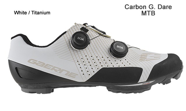 The CARBON G.DARE is a MTB and cyclocross shoe. The microfiber material is strategically perforated to prioritize breathability and enhance air ventilation, keeping your feet cool and dry. Internally the shoe is combined with mesh to provide long-lasting foot support and enhancing the stability. The TPU overlays on the toe cap and sides provide anti-abrasion protection, enhancing durability.