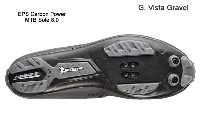 The Gaerne EPS Carbon Power MTB Sole 8.0, developed in collaboration with Michelin®, able to offer optimal power transmission in the pedaling process and sufficient flexibility when walking. Its structure is made up of nylon reinforced with carbon fiber. Michelin rubber tread combines a compound designed to balance performance and abrasion resistance – also in extreme conditions – whith a design profile which allows for excellent hold and traction. The large distance between the treads allows better cleaning and instant mud shedding.