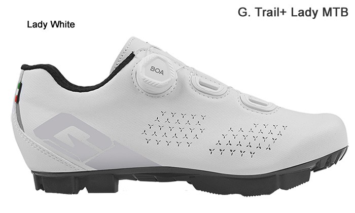 TheGAERNE G. Trail+ Lady MTB shoe is made with premium materials to give excellent qualities of comfort and good technical qualities. The upper is made entirely of soft and perforated microfiber to enhance the light weight and breathability properties of the shoe.